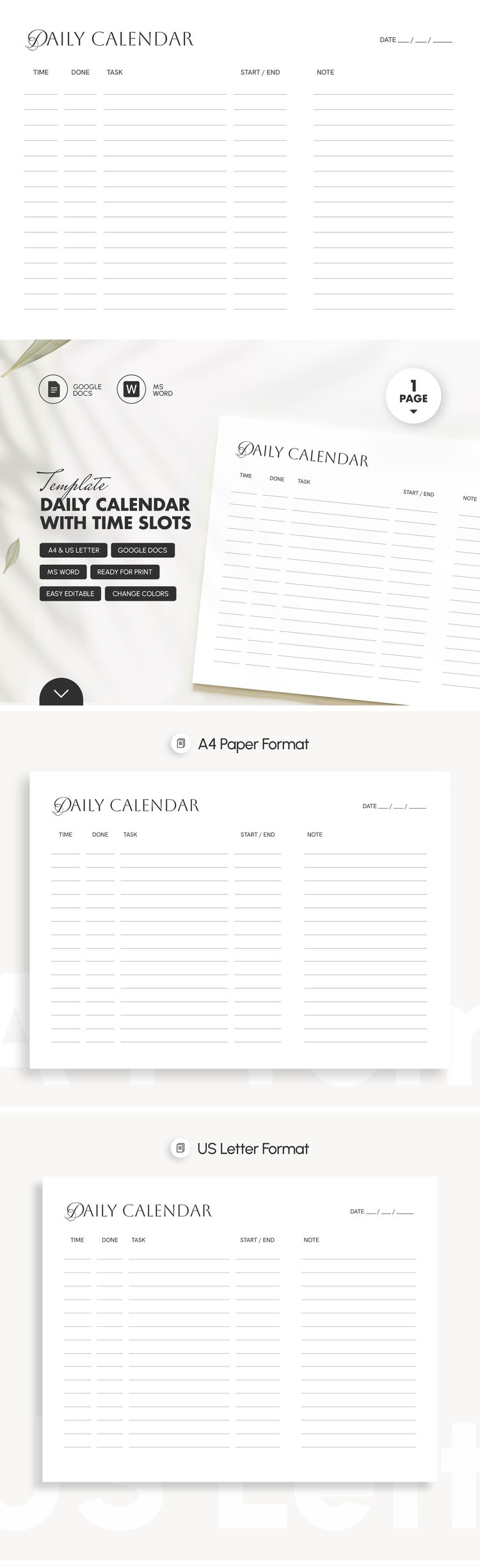 Daily Calendar Template with Time Slots