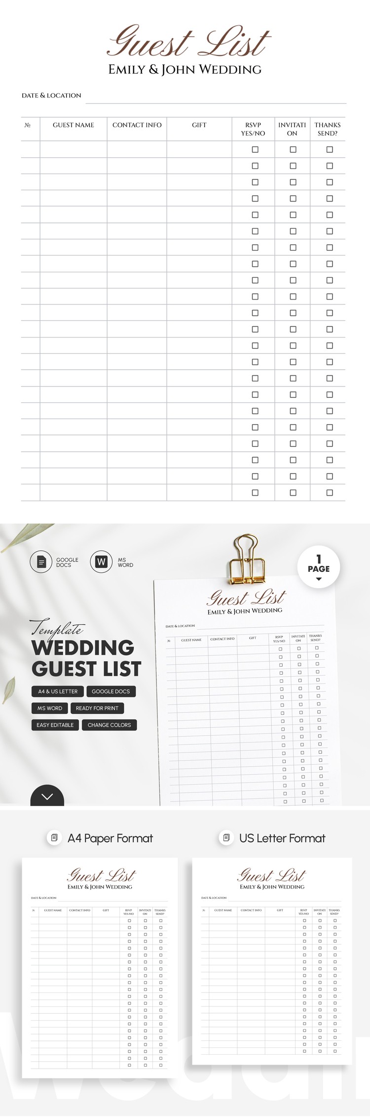Editable Minimalist Wedding Guest List
