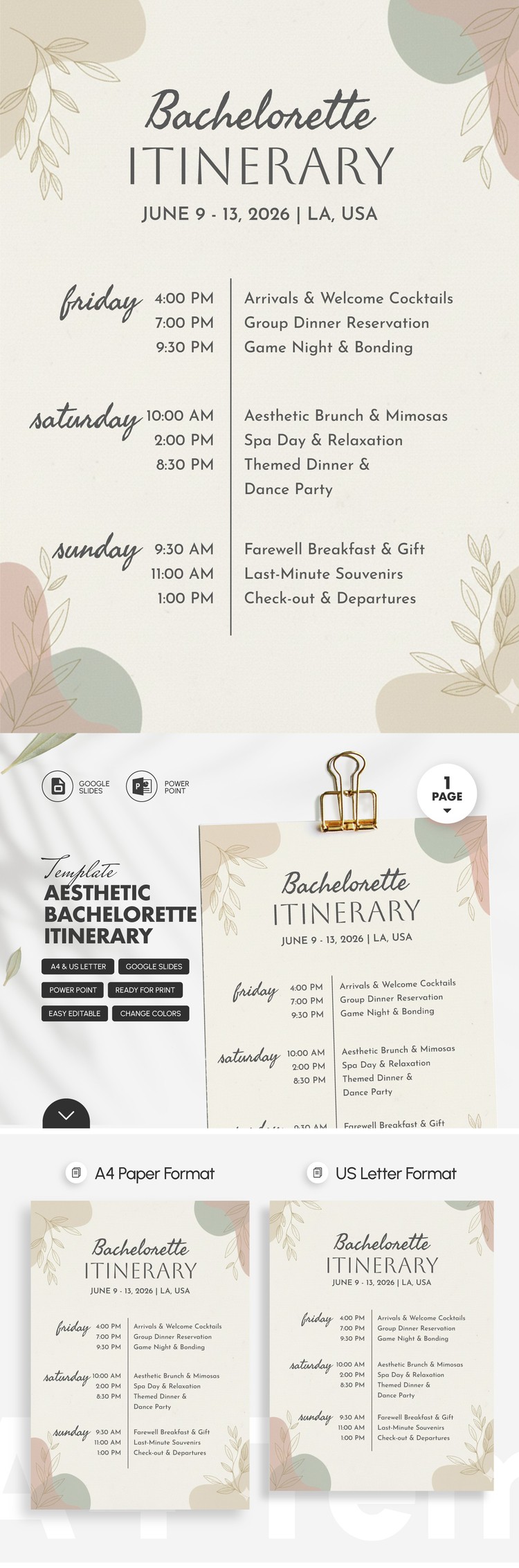 Plantilla de Itinerario de Fin de Semana para Despedida de Soltera Estética