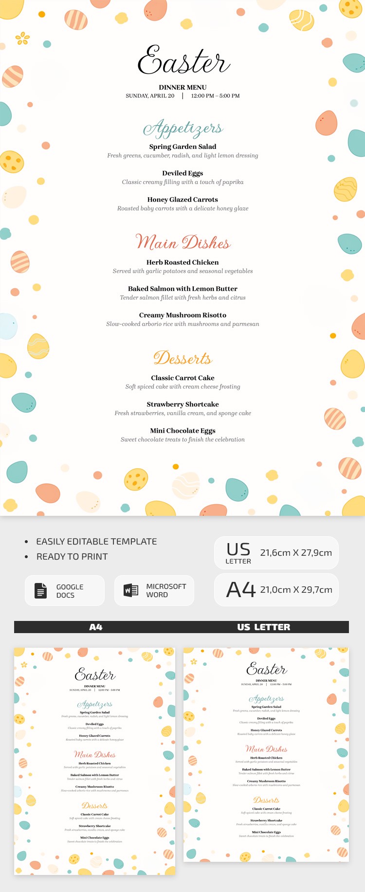 Plantilla editable del menú de Cena de Pascua
