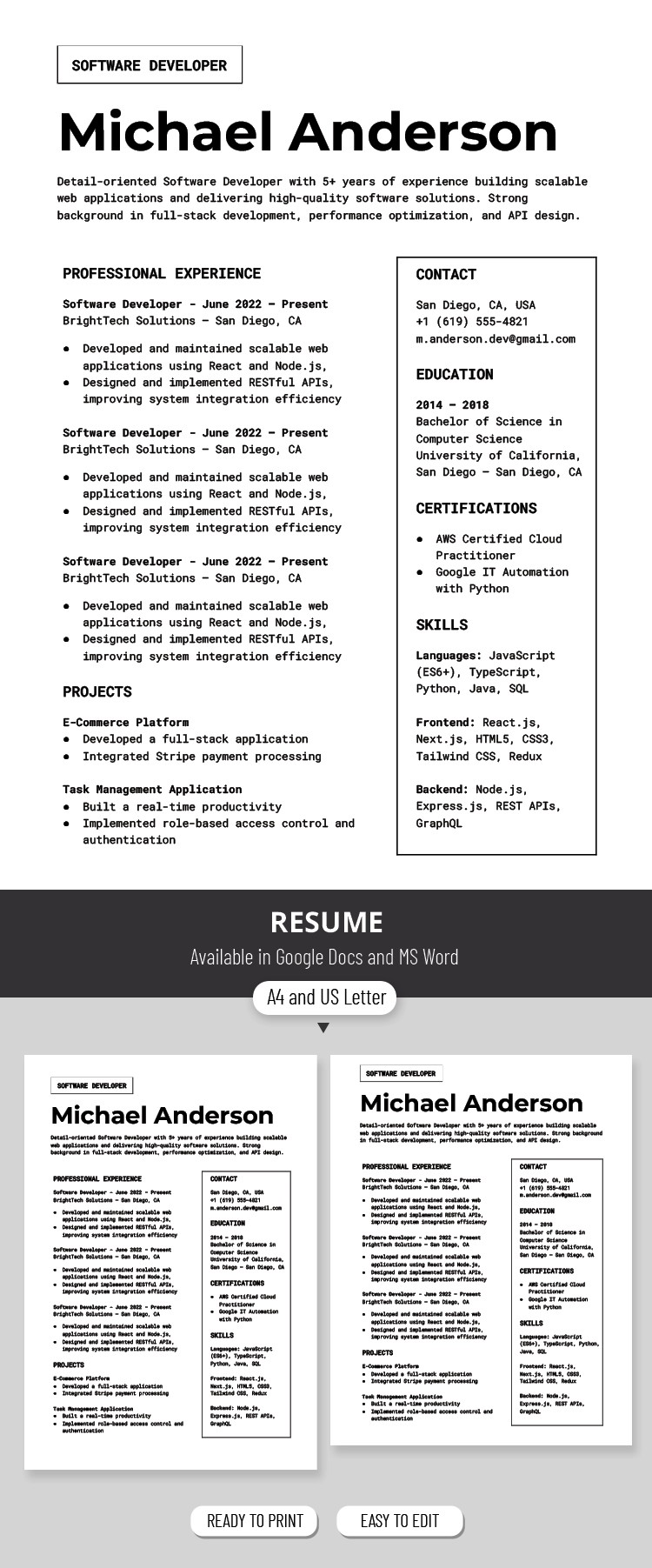 Plantilla de curriculum vitae de Desarrollador de Software para 2026
