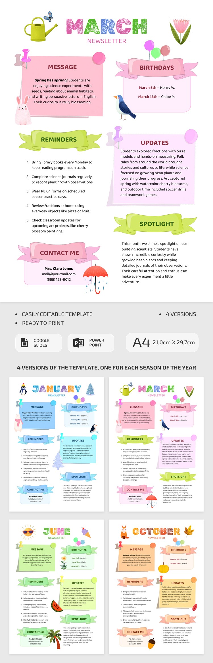 Modèle de bulletin d'information mensuel pour les salles de classe