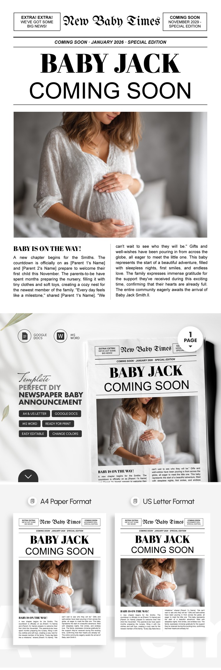Modèle parfait d'annonce de naissance de bébé à faire soi-même à partir du journal