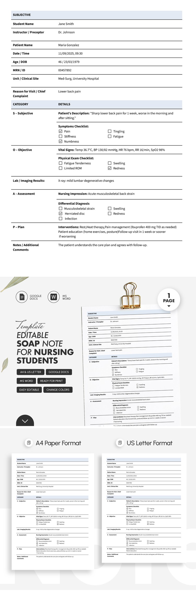 Modèle de note SOAP éditable pour les étudiants en soins infirmiers