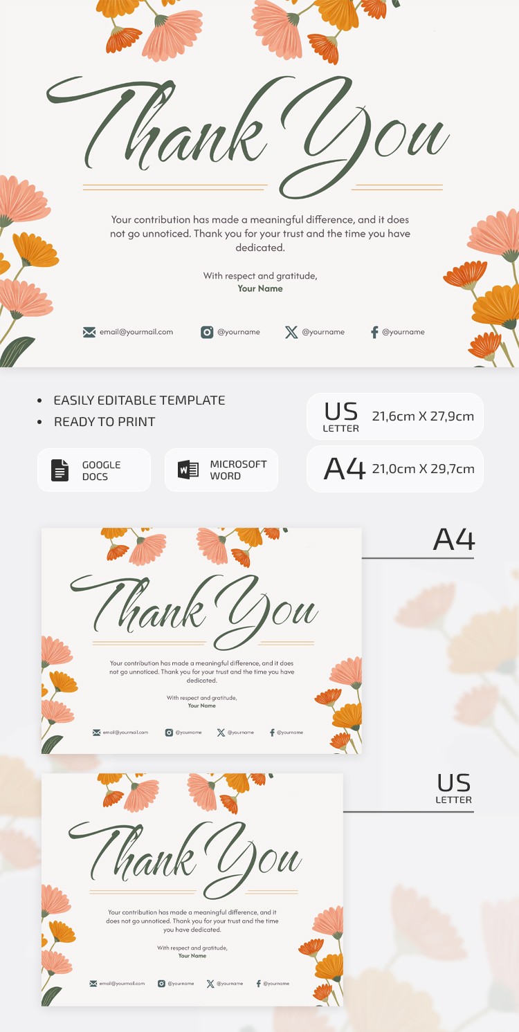 Modèle de note de remerciement minimaliste – Imprimable & Éditable