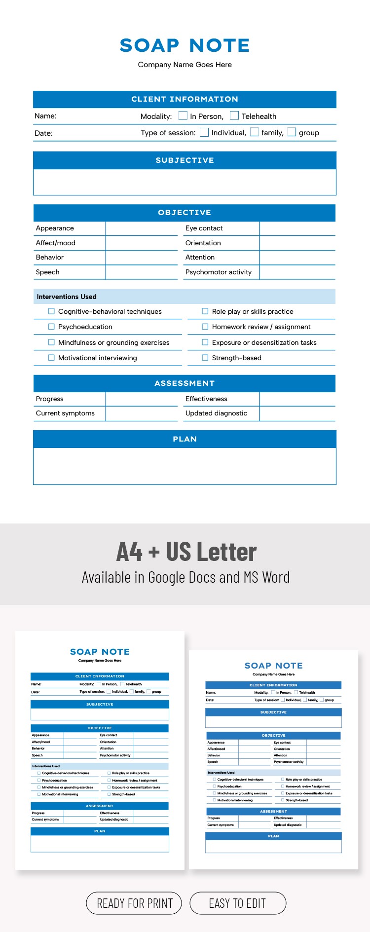 Modèle de note SOAP imprimable pour les séances de thérapie