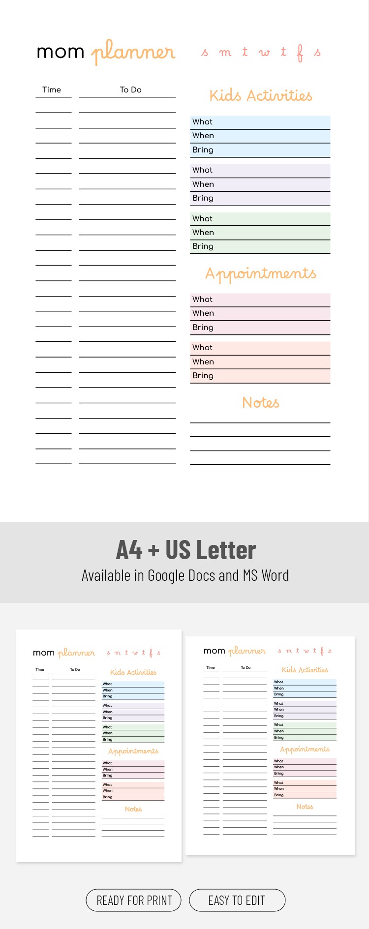 Organisateur quotidien pour les mamans