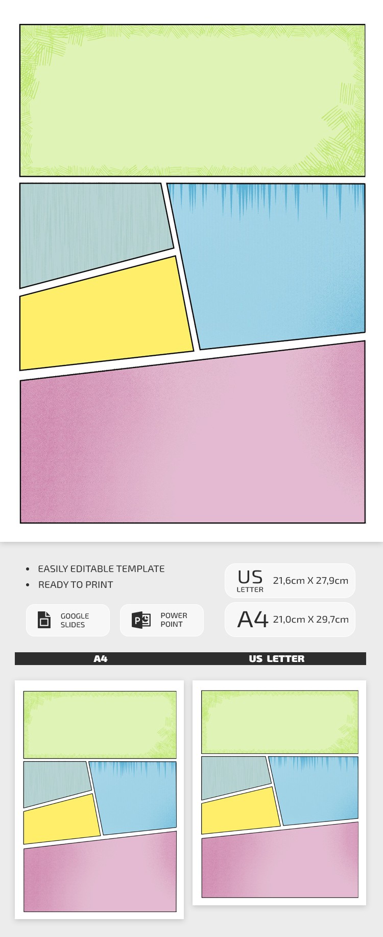 Modello di striscia comica a 5 pannelli - Versione a colori