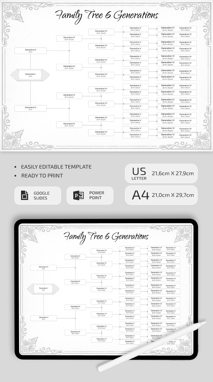 Albero genealogico vintage con template per 6 generazioni