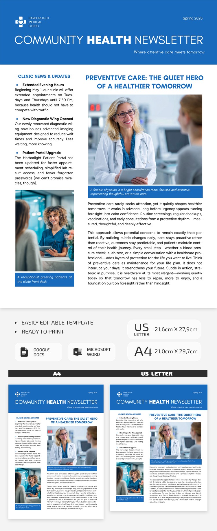 Esempio di Newsletter della Clinica Sanitaria – Modello Editabile
