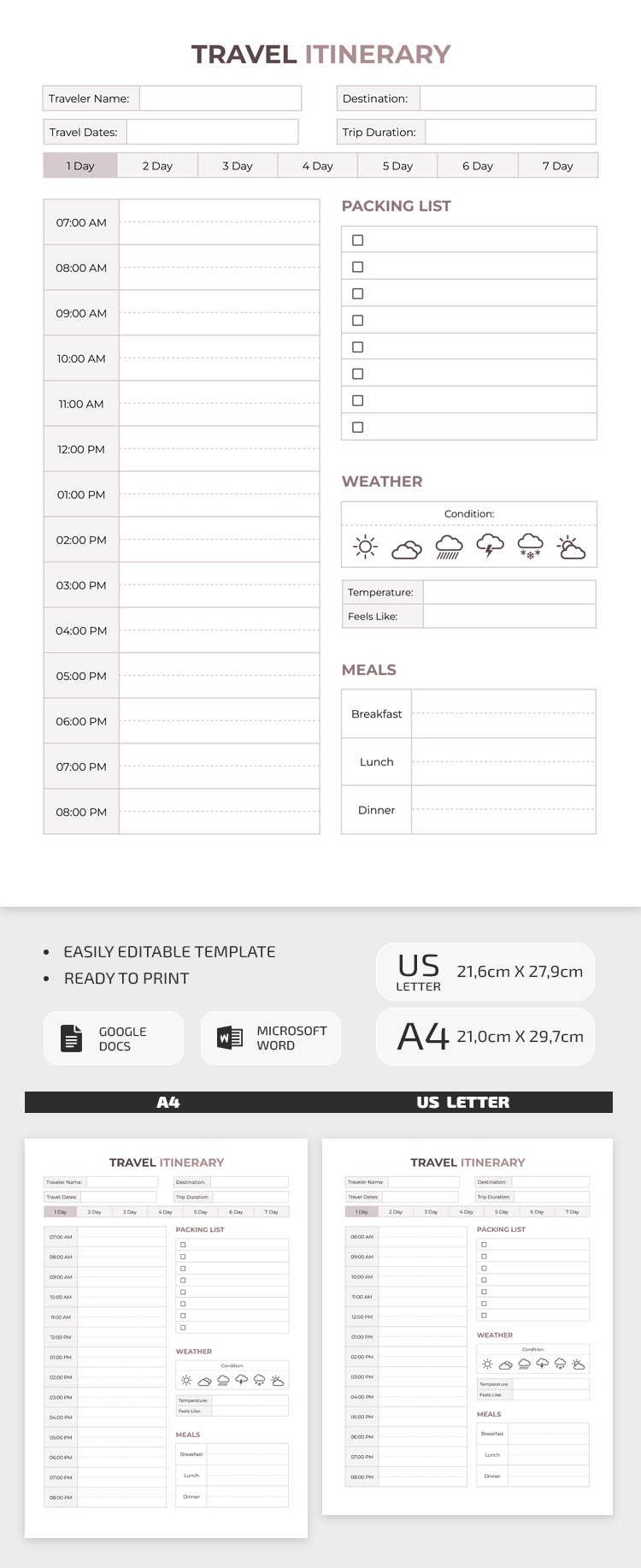 Similar Blank Travel Itinerary Template