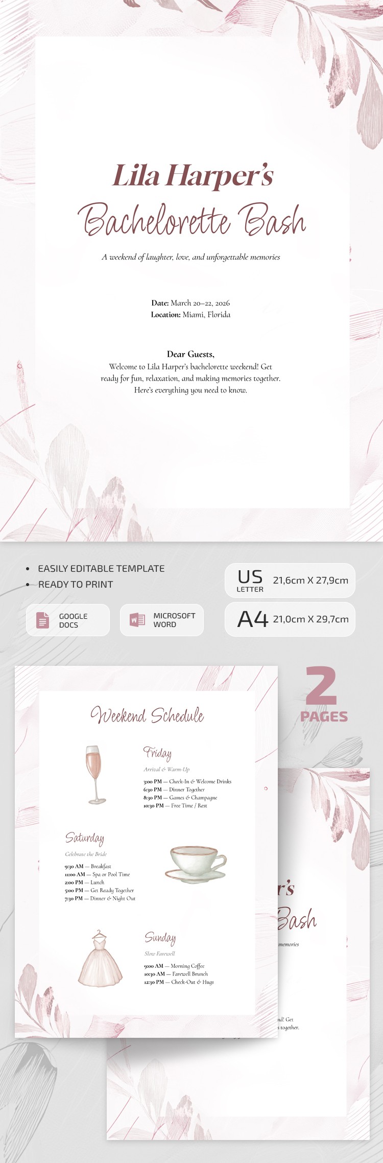 Editable Bridal & Bachelorette Itinerary Template