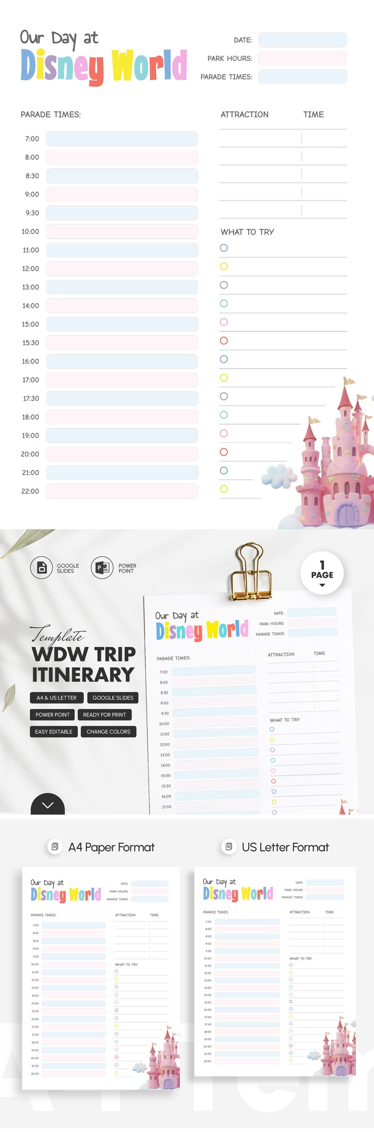 WDW Trip Itinerary Template