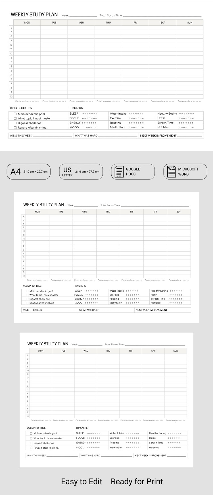 Weekly Study Planner Template
