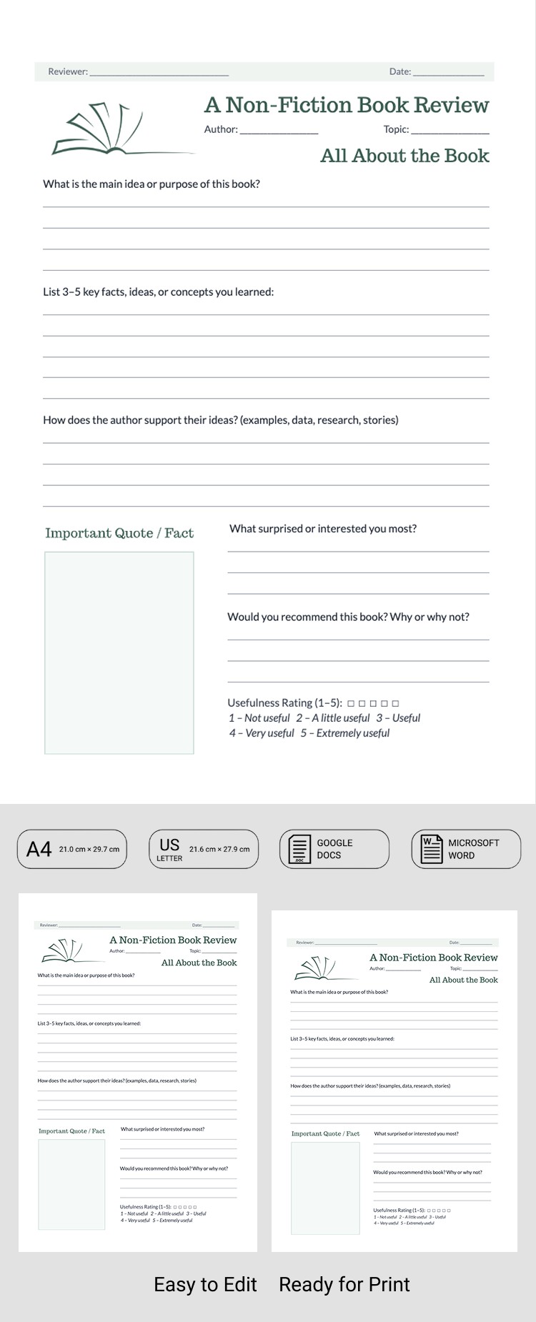 - Compatível: Google Docs and Microsoft Word