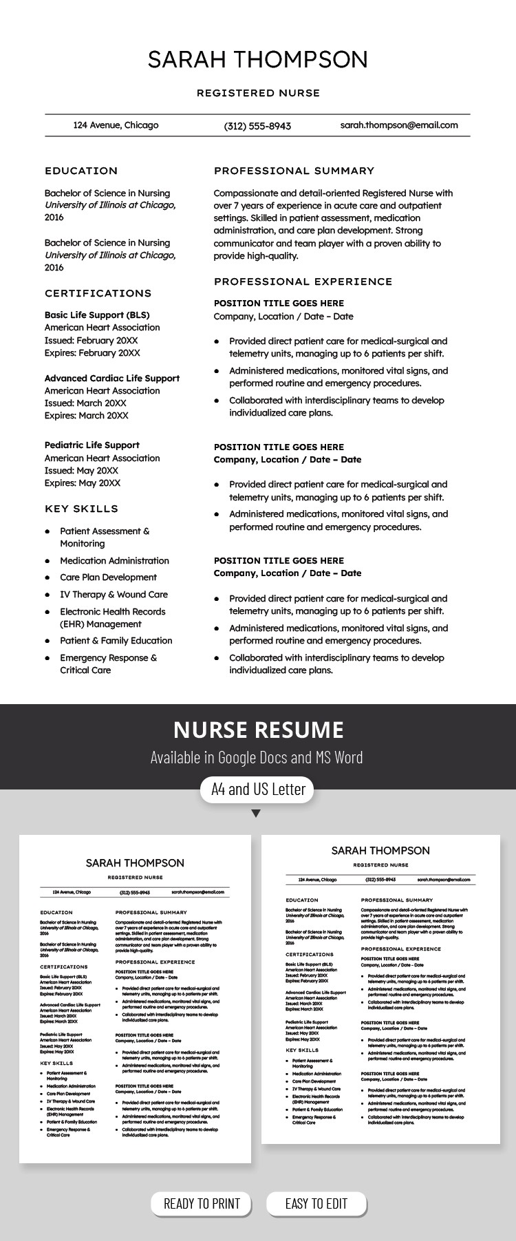 Professional Nursing Resume Template – Showcase Skills & Experience