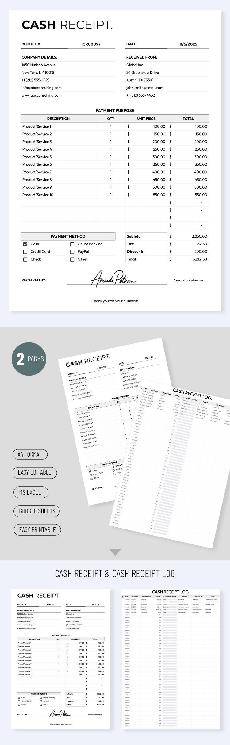 Printable Cash Receipt Template for Businesses